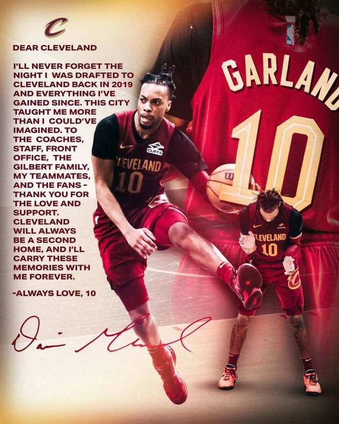 加蘭寫道:致克利夫蘭,我永遠不會忘記2019年被騎士選中的那個夜晚,以及自此之後發生的一切。這座城市教會我的,遠超出我的想象。致球隊工作人員、管理層、吉爾伯特傢族、我的隊友們,還有球迷們:感謝你們的愛與支持。克利夫蘭永遠會是我的第二個傢,我會永遠珍藏這些回憶。