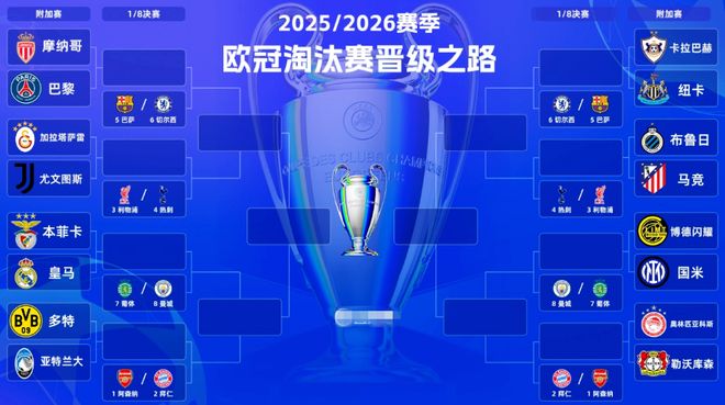 在附加赛中获胜的8支俱乐部将晋级16强,与直通的8支队(阿森纳、拜仁、利物浦、热刺、巴萨、切尔西、葡萄牙体育、曼城)一起,组成本赛季欧冠16强的最终阵容。